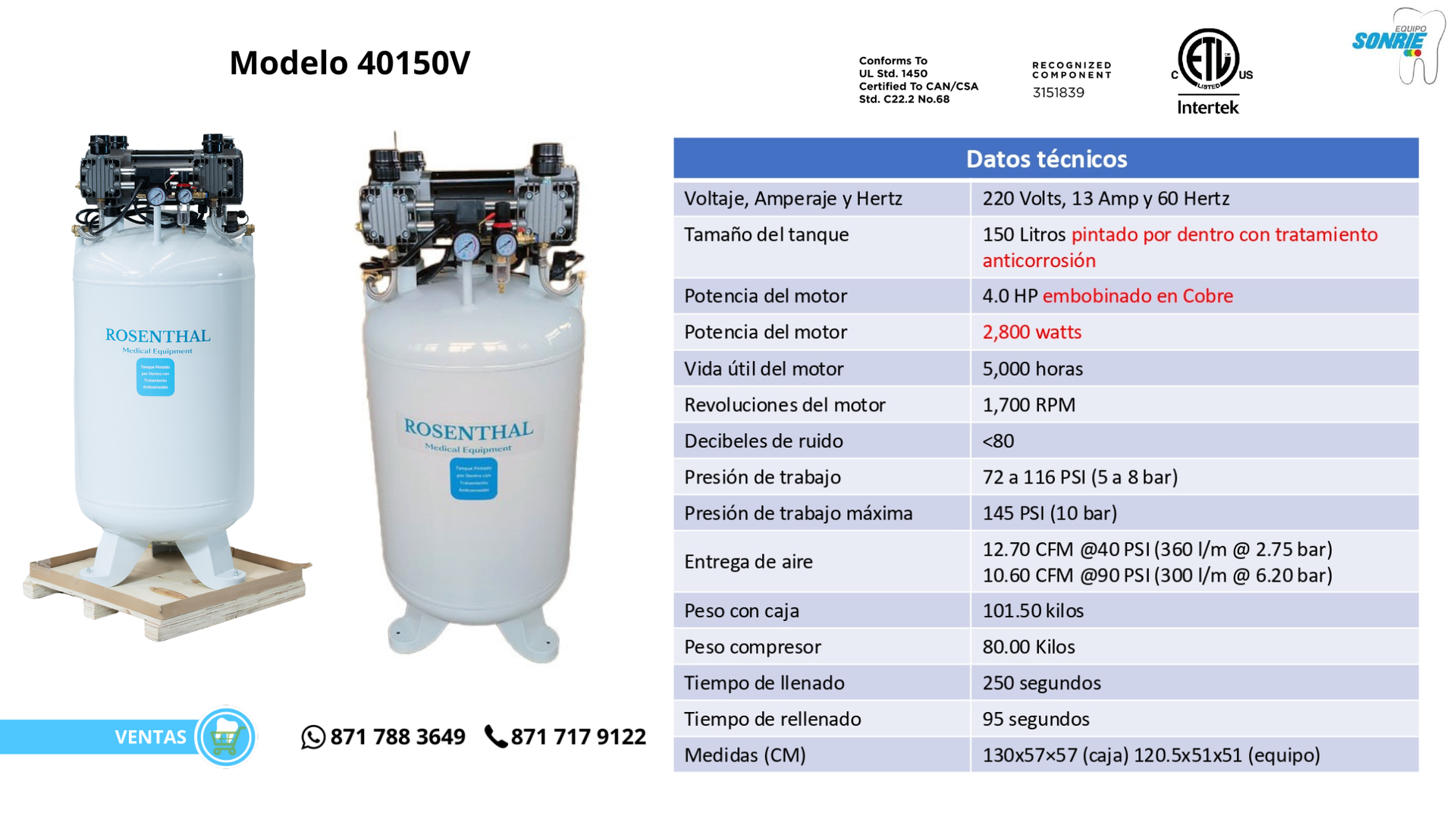 COMPRESOR ROSENTHAL 4 HP 150 L VERTICAL